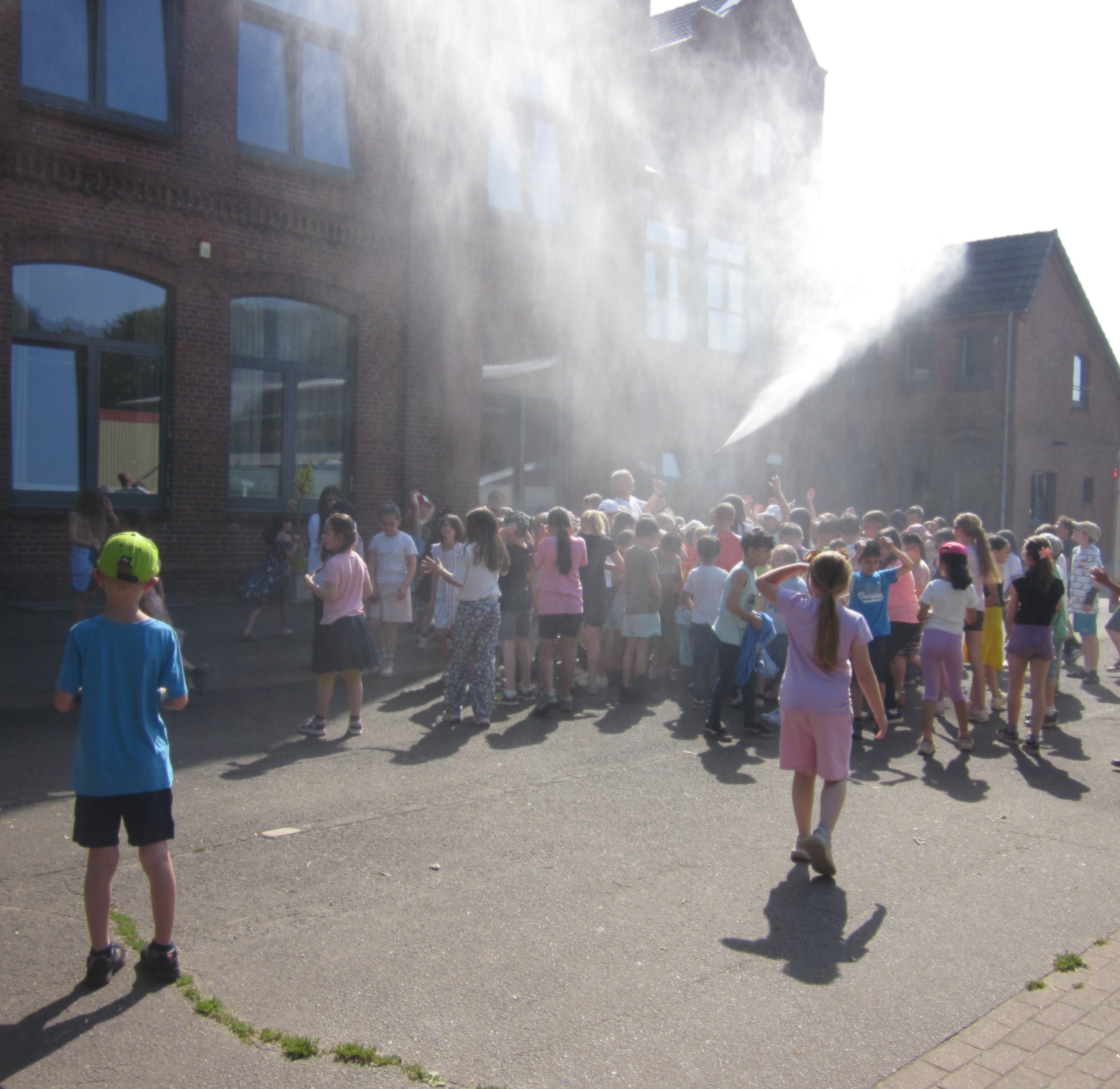 Bei 35°C sorgte unser Hausmeister in der großen Pause für etwas Erfrischung und gute Laune. Danach konnte der Unterricht erfrischt im meist kühlen Backsteingebäude weitergehen.